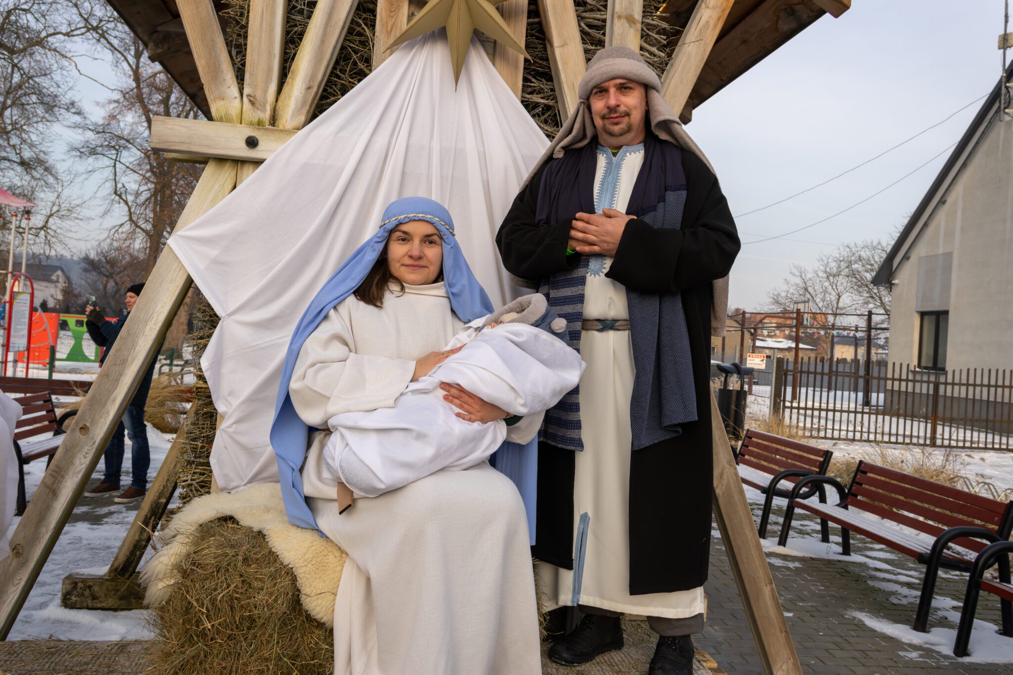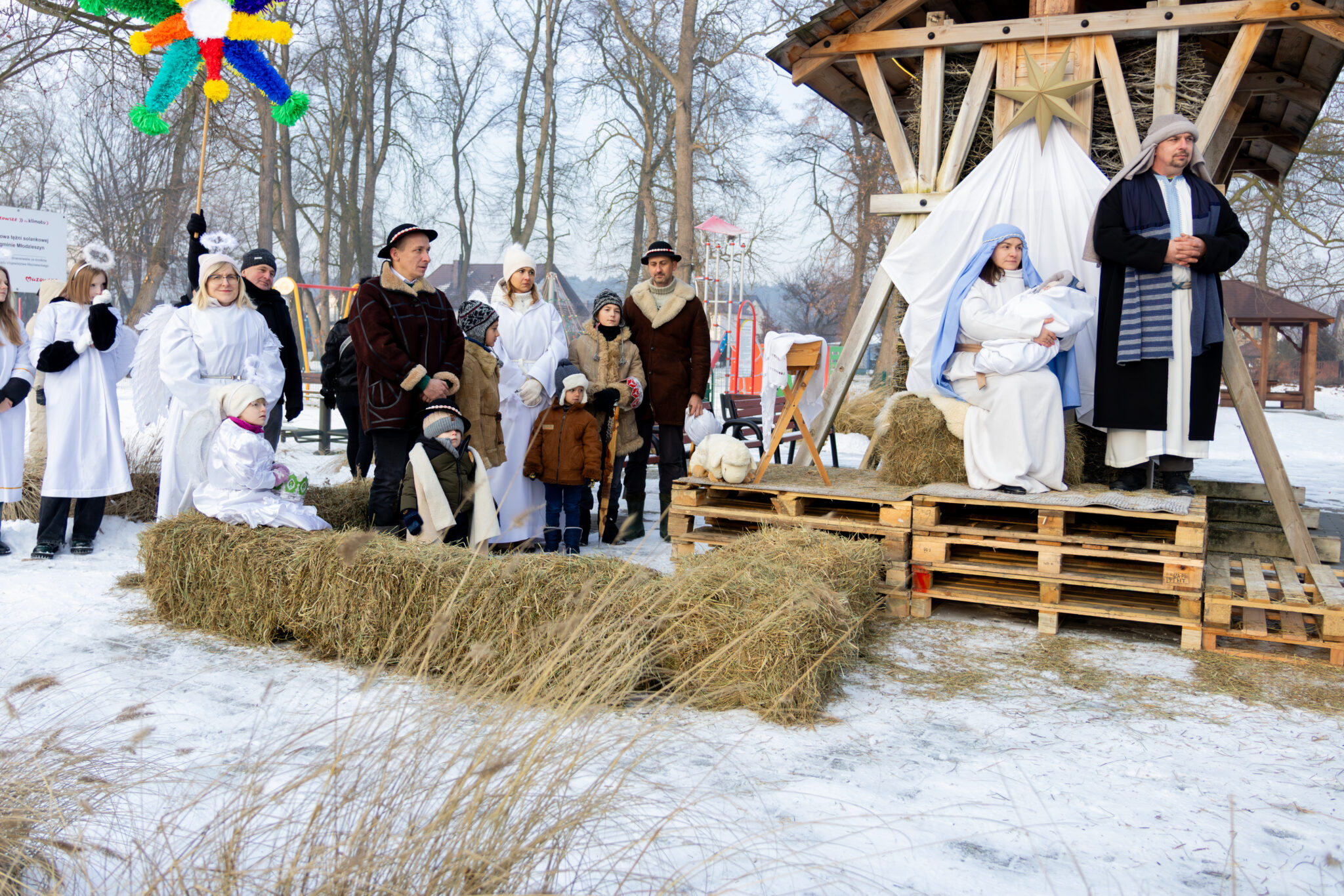 Serdecznie podziękowania kierujemy do wszystkich uczestników i organizatorów wydarzenia: ks. proboszcza Roberta Sierpniaka, Pani Beaty Ciury, KGW Harde Babki, druhen i druhów OSP Młodzieszyn i OSP Budy Stare, mieszkańców którzy wzięli udział w przedstawieniu, zespołu Purple, dzieci przystępujących do bierzmowania, Państwa Winnickich za udostępnienie osiołka.