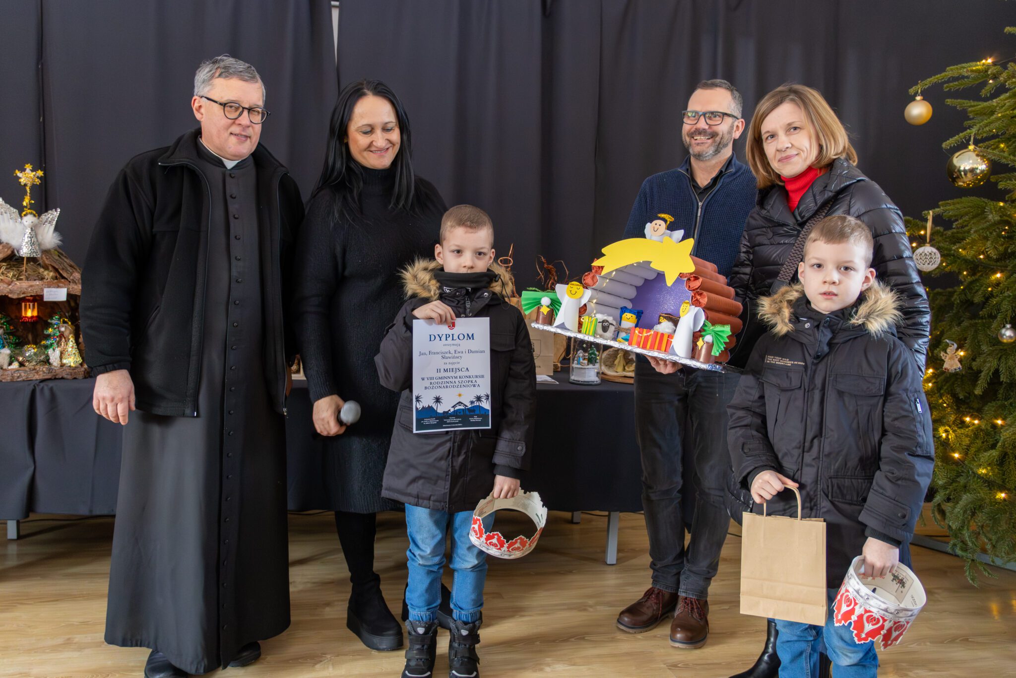 II miejsce – ex aequo rodzina Państwa Orlińskich za szopkę „Na góralską nutę” oraz rodzina Państwa Sławińskich za szopkę „Ziarenka miłości”