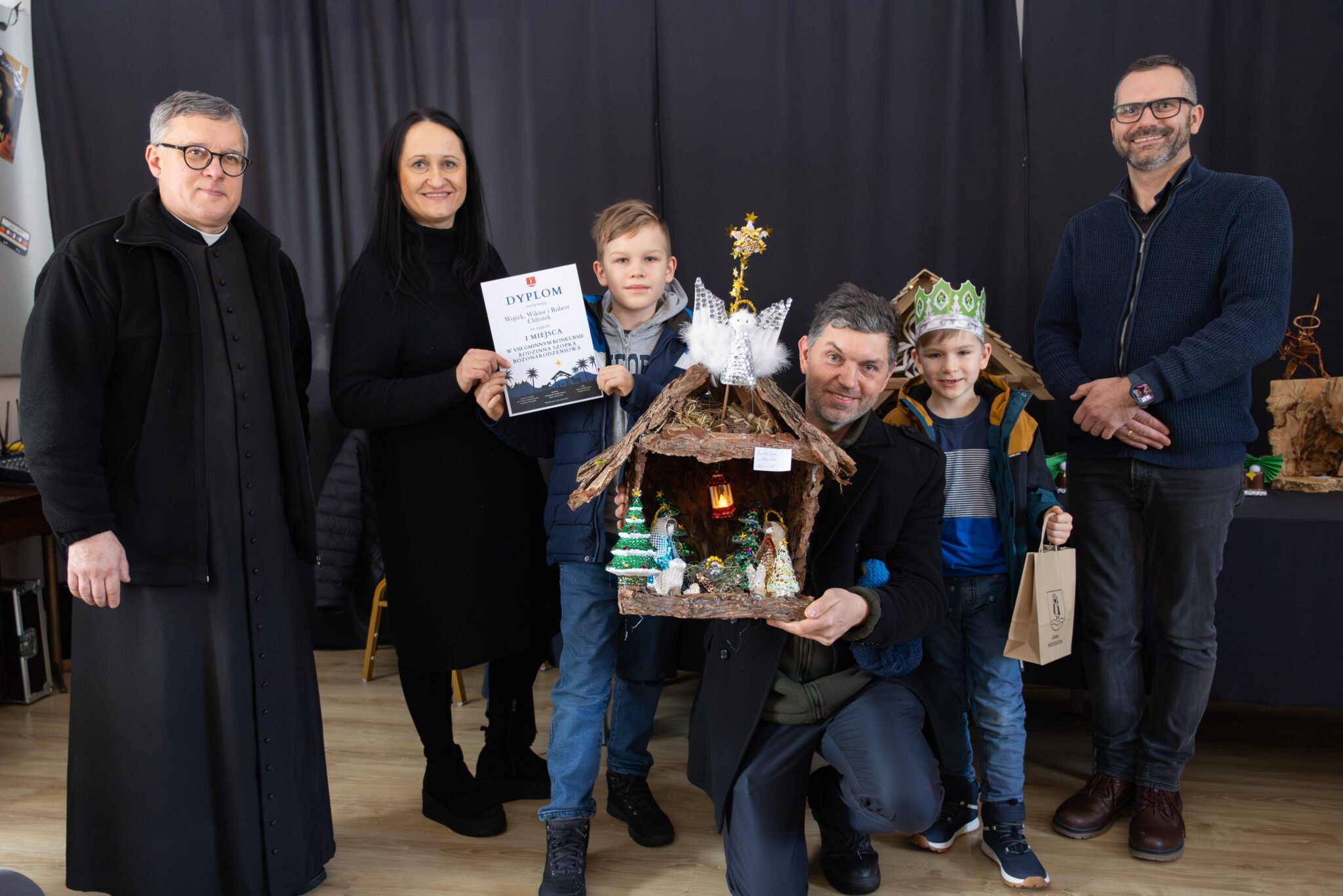 I miejsce – rodzina Państwa Chłystków za szopkę „Betlejem w blasku cekinów”