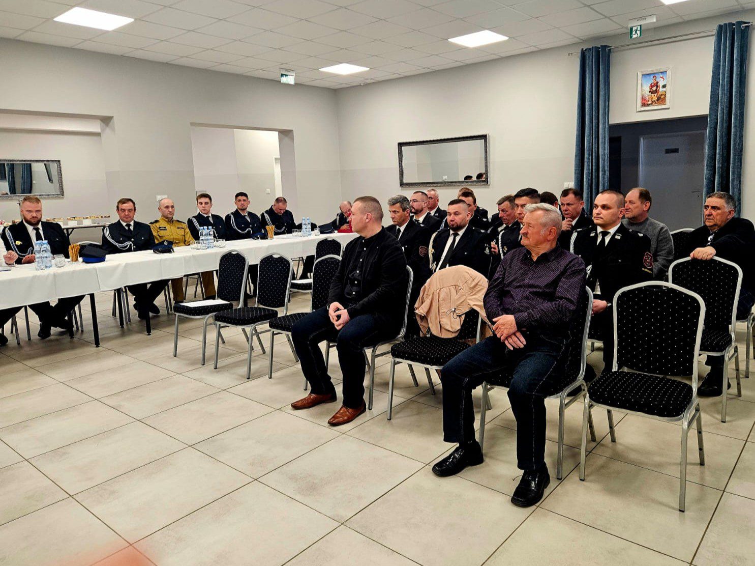 W zebraniu wzięli udział mł. bryg. Rafał Krupa Komendant Powiatowy PSP w Sochaczewie, Michał Orliński radny Sejmiku Województwa Mazowieckiego, Monika Pietrzyk Wójt Gminy Młodzieszyn, Anna Sobieraj Sekretarz Gminy Młodzieszyn, Małgorzata Zawadzka Skarbnik Gminy Młodzieszyn, Sławomir Makowski Przewodniczący Rady Gminy, dh Roman Stobiecki Prezes Zarządu Oddziału Gminnego ZOSP RP, Maciej Woźniak Kierownik GZGK, Justyna Jackowska Kierownik Referatu Organizacyjnego Gminy Młodzieszyn.