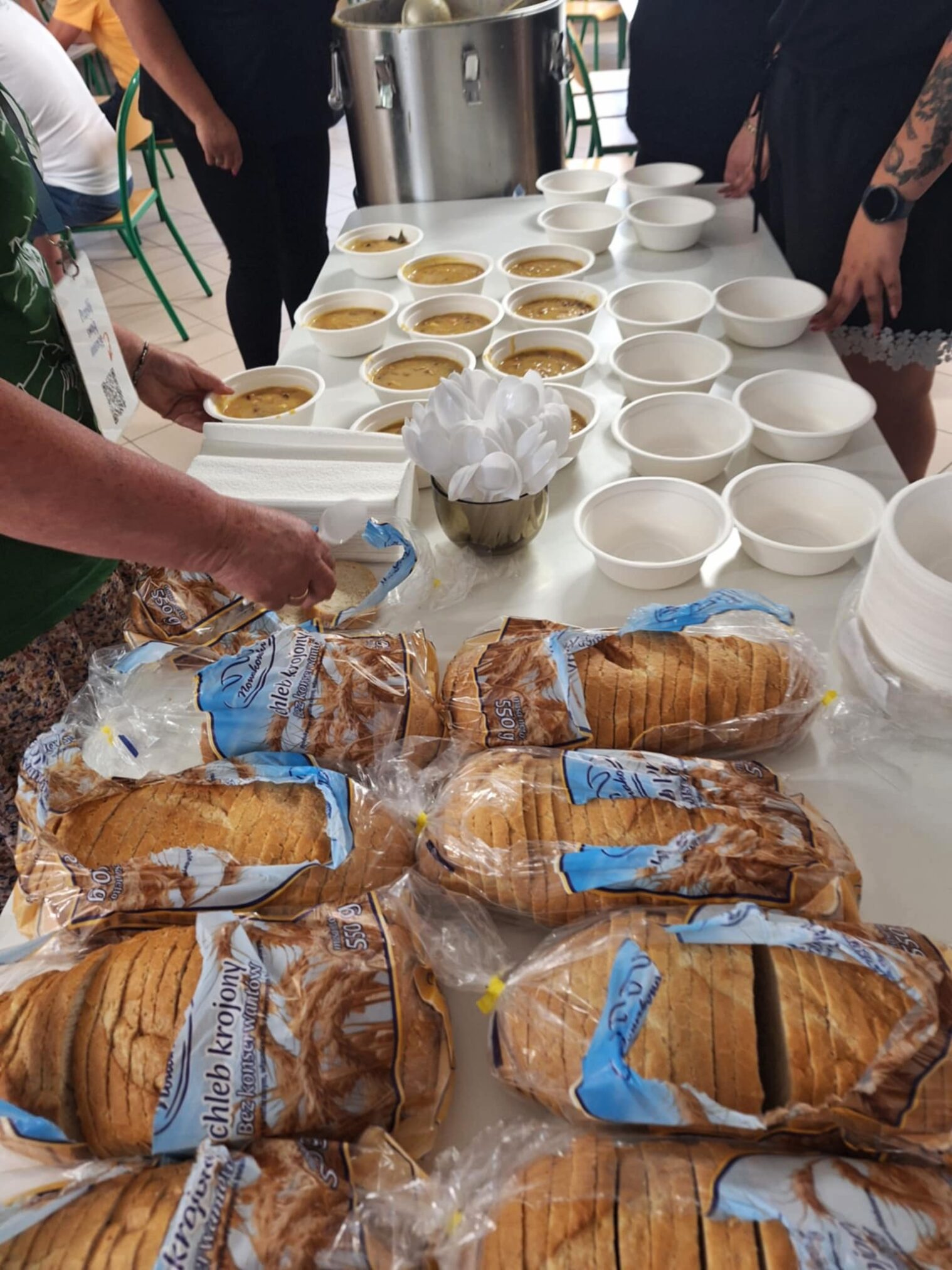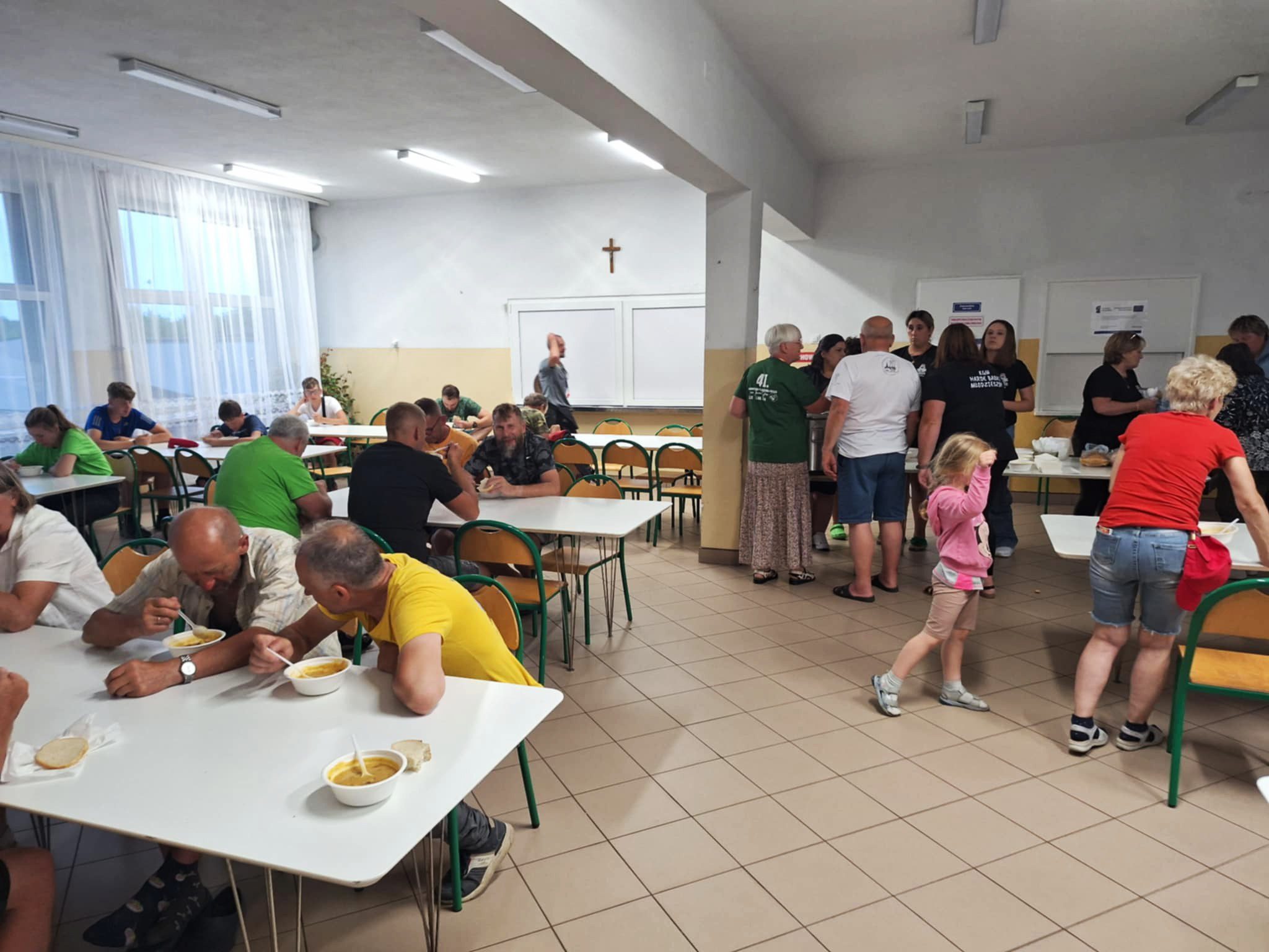Po trudach długiej wędrówki pielgrzymi mogli odpocząć w gościnnych murach Szkoły Podstawowej im. gen. Stanisława Grzmota-Skotnickiego w Młodzieszynie. Na wszystkich czekał również ciepły, domowy posiłek przygotowany z sercem przez Koło Gospodyń Wiejskich „Harde Babki”.