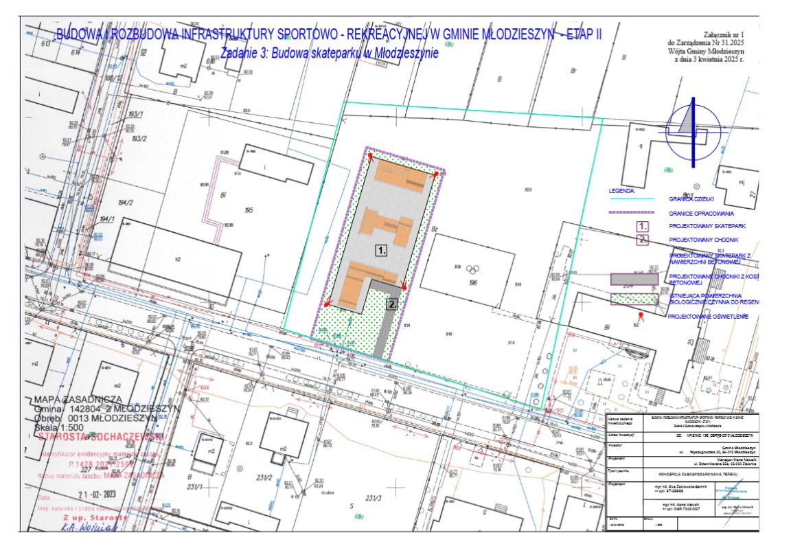 Wójt Gminy Młodzieszyn ogłasza przeprowadzenie konsultacji społecznych w dniach od 4 kwietnia 2025 roku do 11 kwietnia 2025 roku. w sprawie przeprowadzenia konsultacji społecznych dotyczących wyrażenia opinii na temat budowy skateparku w Młodzieszynie, na dz. nr ew. 196, obręb 0013 Młodzieszyn.