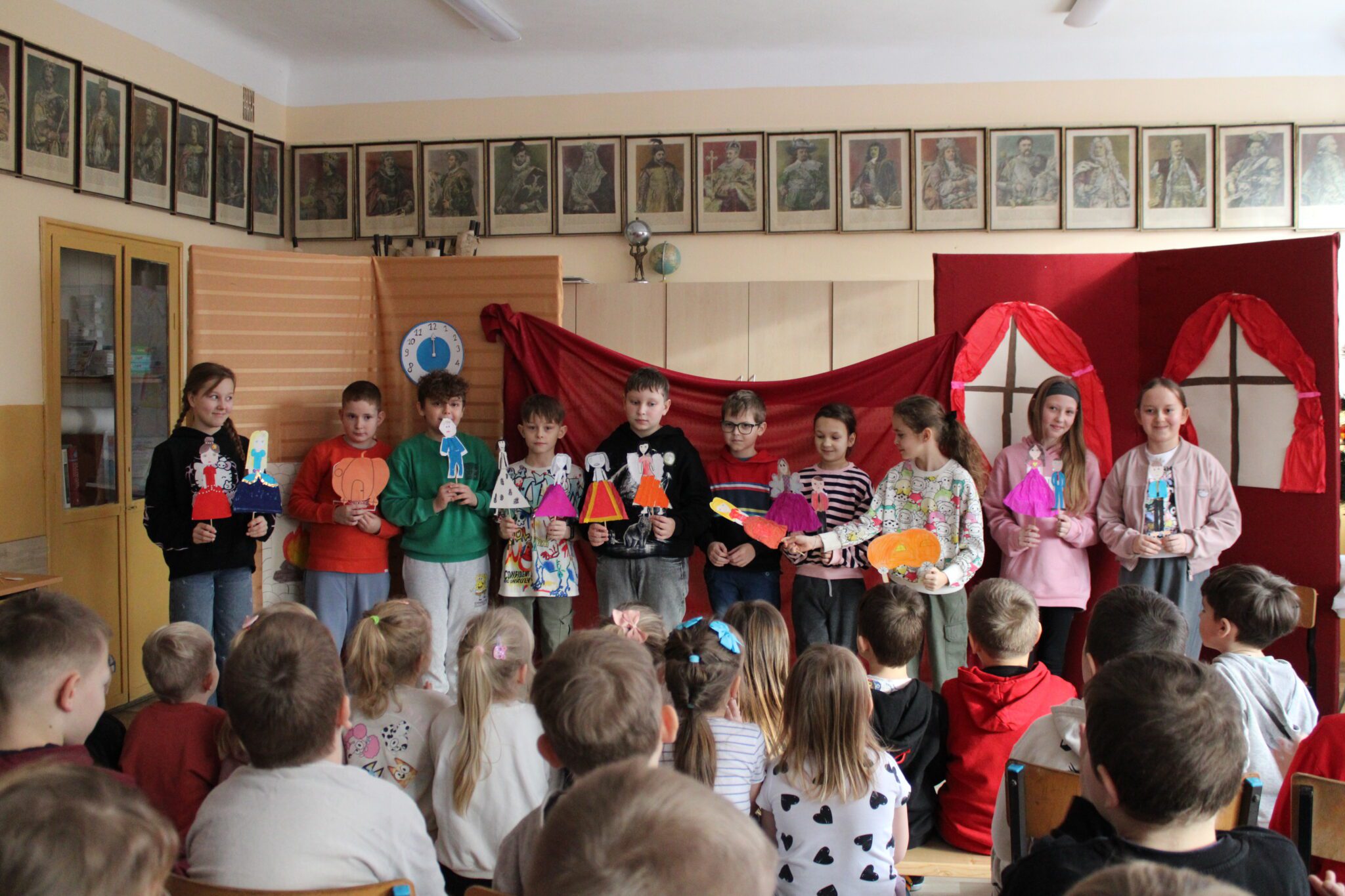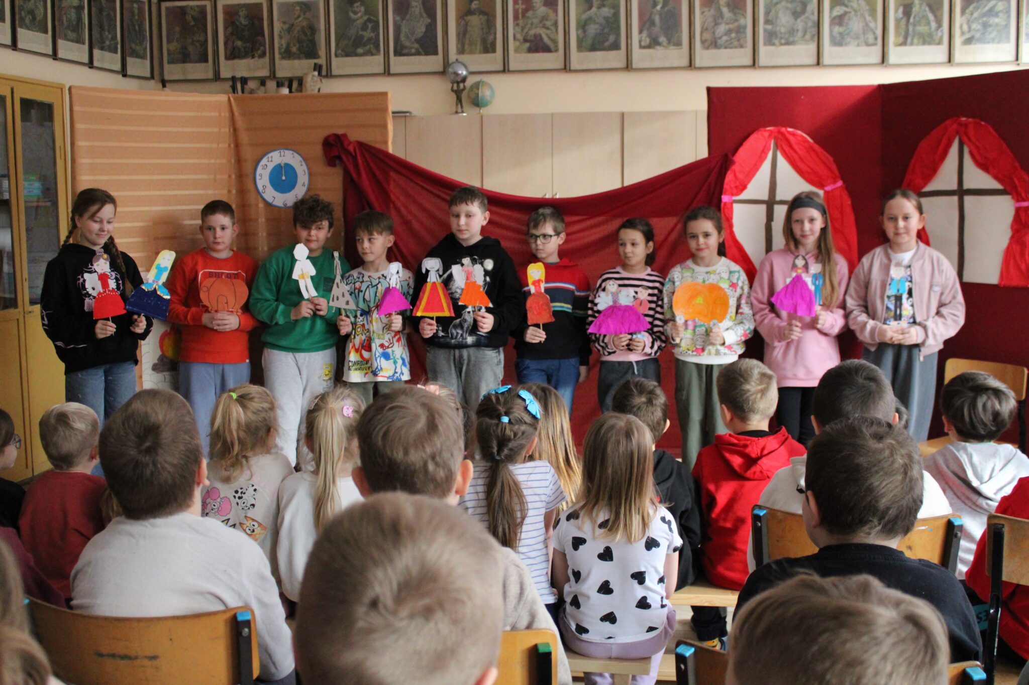 Kółko teatralne „Gwiazdy” udowodniło, że klasykę można opowiedzieć zupełnie na nowo. Inscenizacja „Kopciuszka” Wandy Chotomskiej zachwyciła humorem i sposobem wykonania, gdyz uczniowie odgrywali swoje role za pomocą papierowych kukiełek. Uczniowie klasy czwartej przejęli pełną kontrolę nad spektaklem – byli nie tylko aktorami, ale też reżyserami, operatorami dźwięku i charakteryzatorami. Efekt? Widownia była oczarowana, a my już nie możemy doczekać się kolejnej premiery!