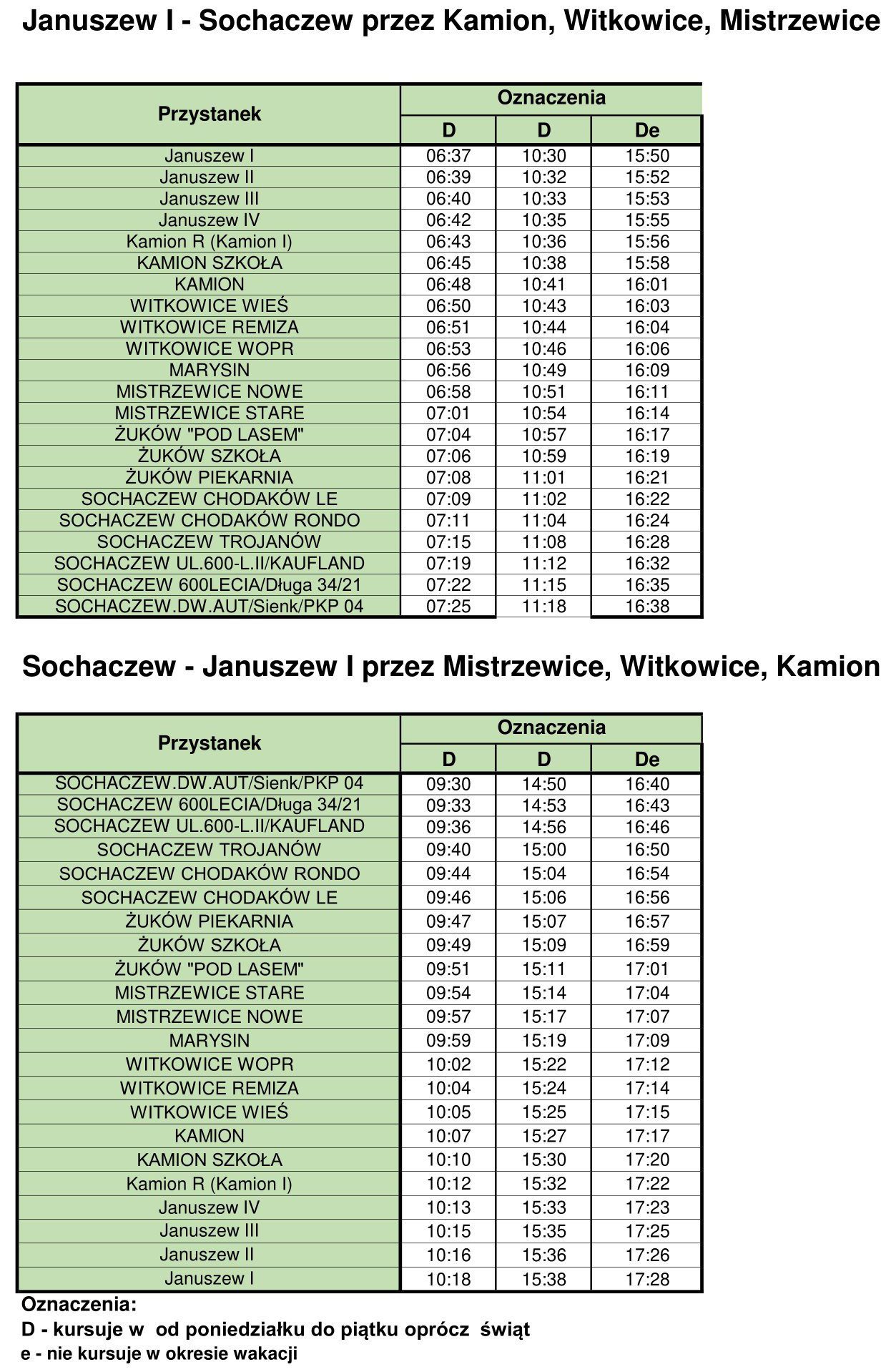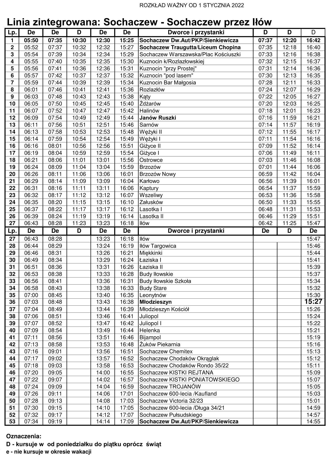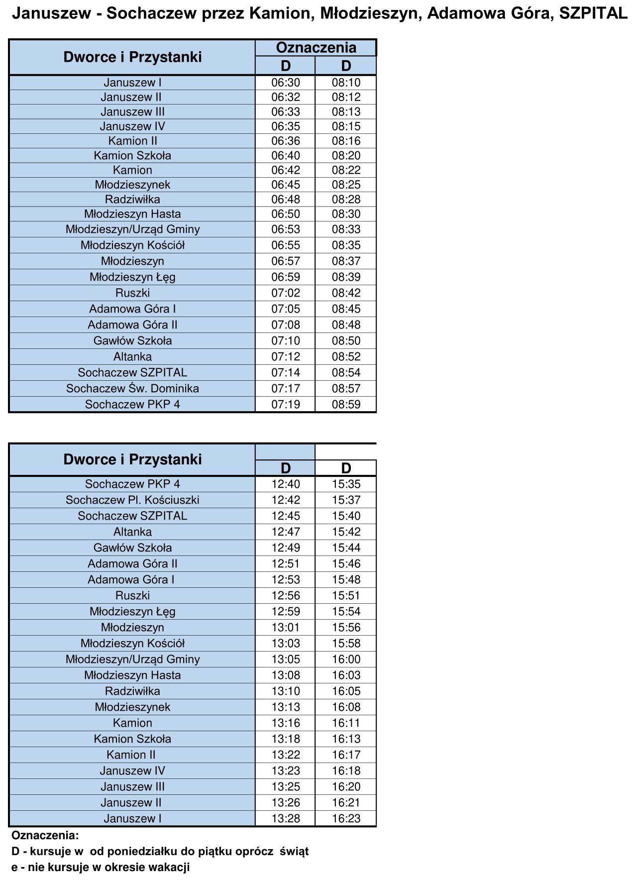 Jednocześnie informujemy, że w okresie ferii zimowych obowiązuje ten sam rozkład.