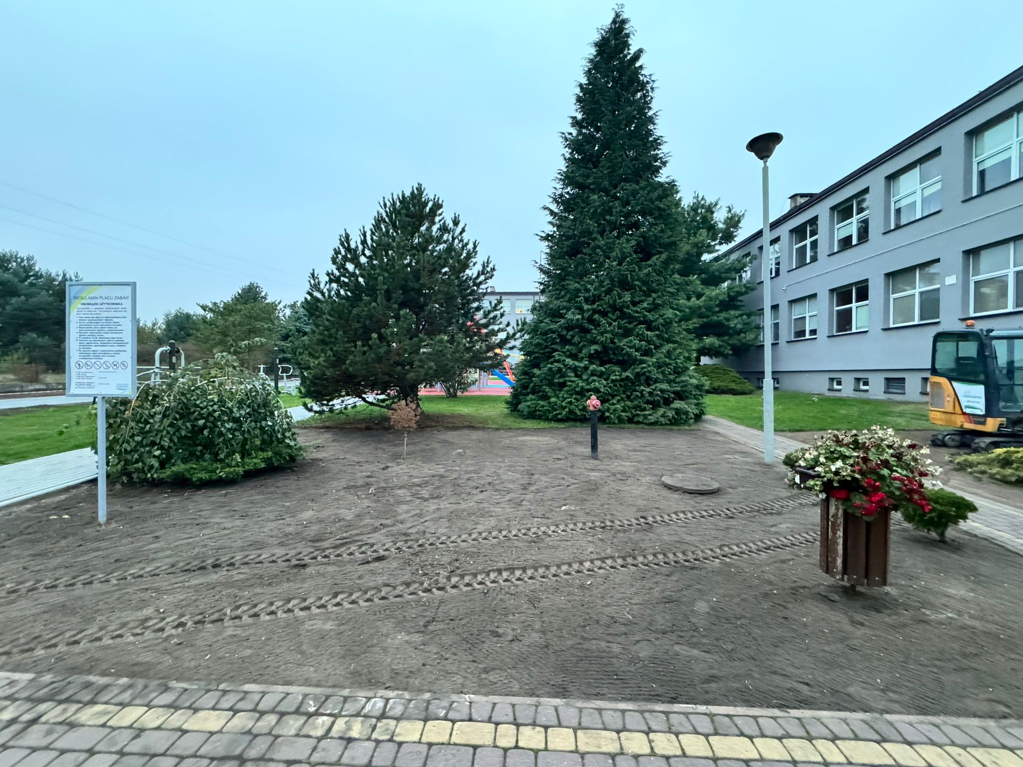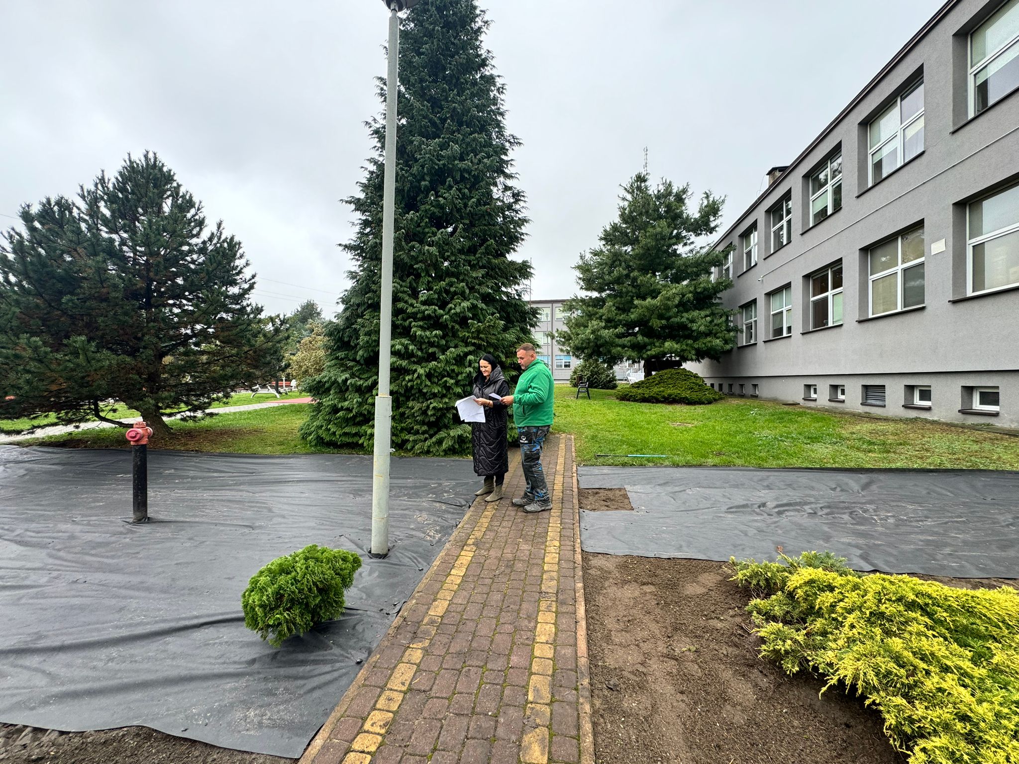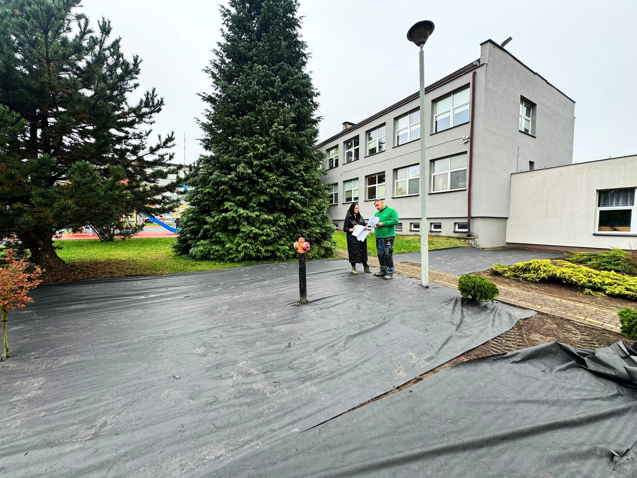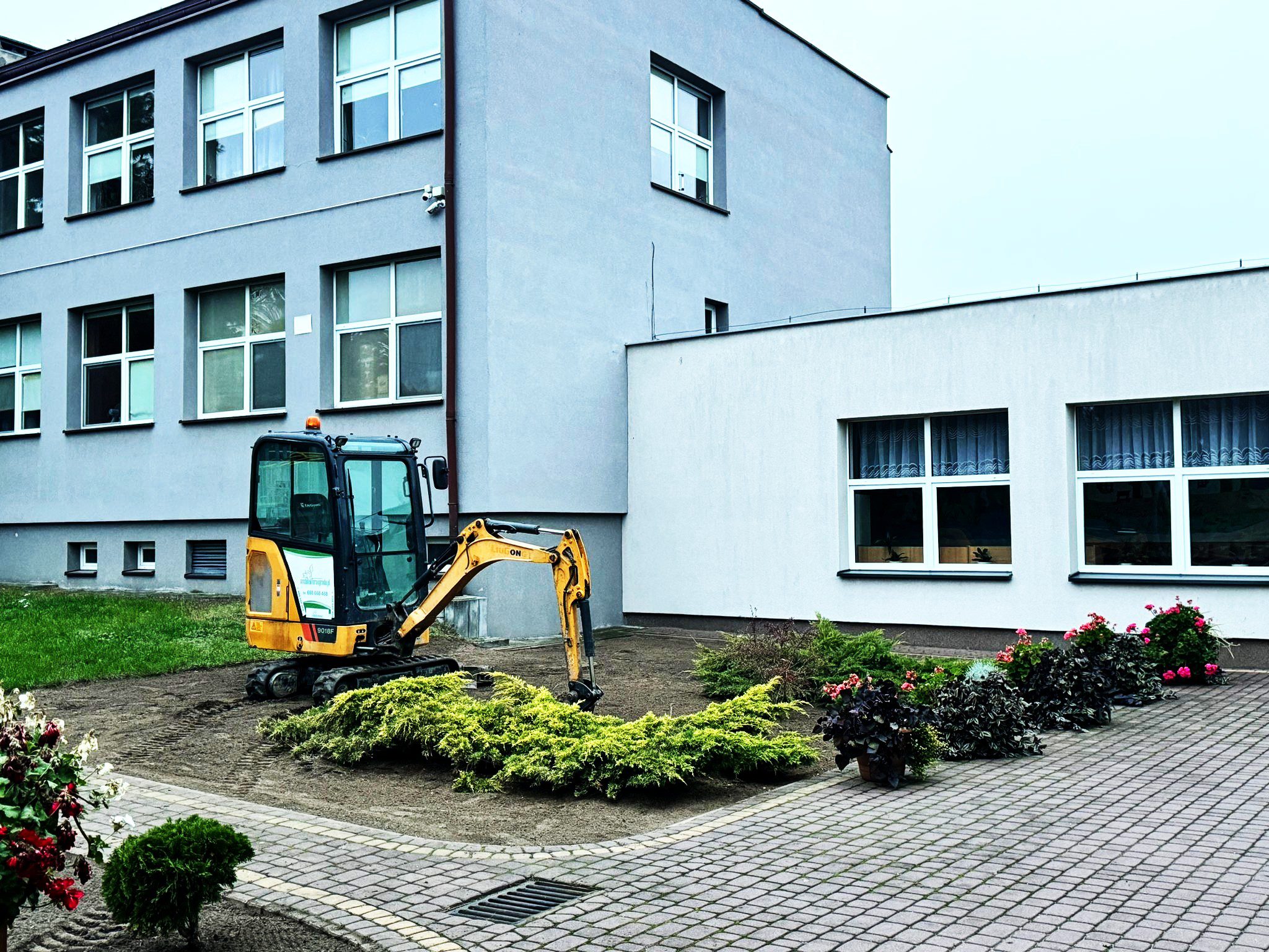 Na terenach dwóch szkół podstawowych w Gminie Młodzieszyn – w Młodzieszynie i Janowie – trwają właśnie intensywne prace związane z realizacją zadania „Nasadzenia zieleni przy szkołach w Gminie Młodzieszyn”.