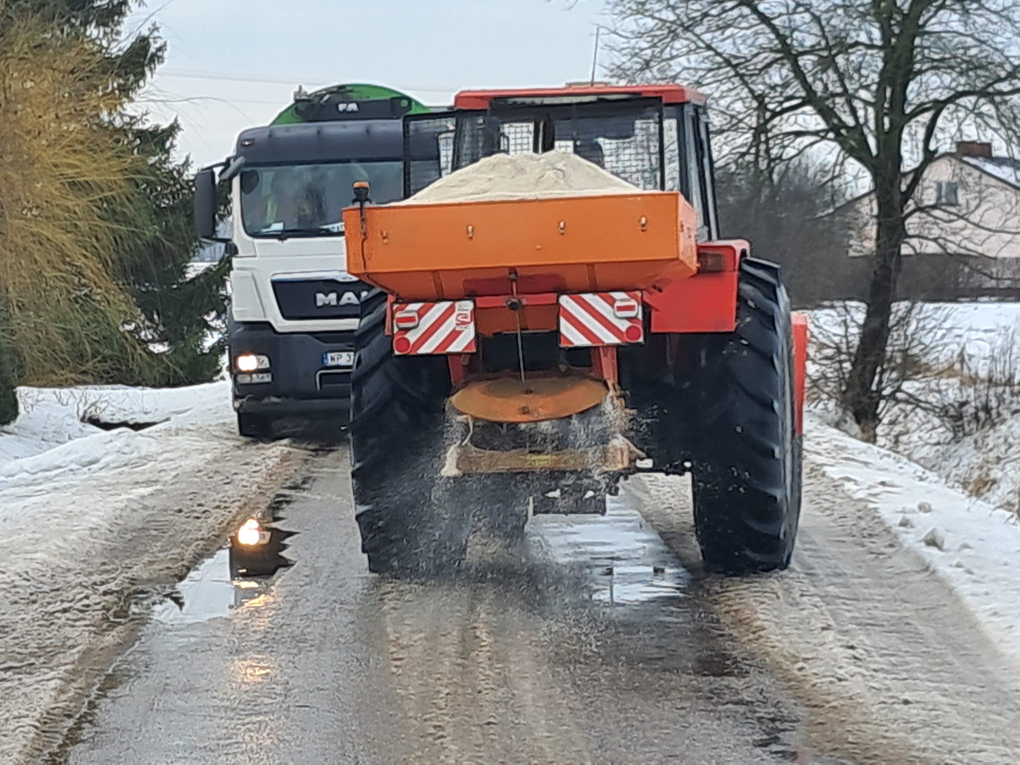 w związku z występującymi trudnymi warunkami atmosferycznymi, intensywnymi opadami śniegu, marznącego deszczu oraz występowaniem gołoledzi, informujemy, że Gmina na bieżąco prowadzi działania związane z zimowym utrzymaniem dróg, chodników i ciągów komunikacyjnych.
