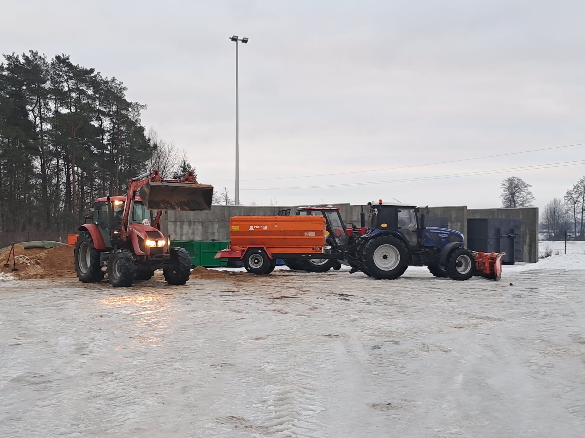 W akcjach odśnieżania uczestniczy samochód ciężarowy specjalny z pługiem bocznym, ciągnik z pługiem typu strzałka wraz z posypywarko – piaskarką ciągnioną oraz do dwóch dodatkowych ciągników wyposażonych w zawieszane posypywarko-piaskarki, co pozwala na sprawniejsze i szybsze udrażnianie dróg.